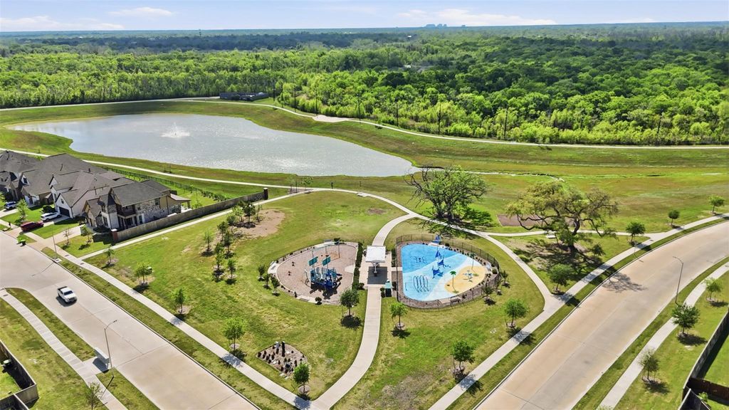 Dramatic two-story home featuring open concept living with soaring ceilings & two guest suites with private baths, one upstairs & one downstairs! Enjoy the large, covered patio with a gas line on a private lot, perfect for entertaining. Grand entry showcases luxury vinyl wood plank flooring throughout the first floor & stunning light fixtures. Formal living area/study with a wall of windows. Elegant formal dining flows into the dramatic 2 story family area with corner fireplace & impressive wall of windows that opens to the casual dining area & gourmet kitchen. Chef’s kitchen features tall cabinets, large eat-in island, quartz counters, chic tile backsplash & stainless-steel appliances. Spacious primary suite down with sitting area and spa style bath with his and her vanities, large soaking tub, huge shower and walk in closet. Upstairs offers a massive game room, two bedrooms, guest bathroom and guest suite with private bath. Sprinkler system, full gutters and water filtration system!