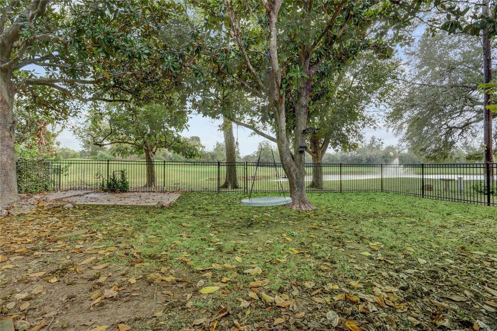 Massive Price Reduction *** Bring all offers. Home Priced AS IS. Welcome to this spacious 4/5 bedroom, 2.5 bath two story home set directly on the golf course, offering peaceful views and plenty of room to spread out. The main floor includes a large living area with beamed ceilings, a brick fireplace, and a wall of windows that frame the backyard and course beyond. A second living room could be the perfect movie room. The kitchen features ample cabinet storage, a center island, and a breakfast area, with a separate formal dining room for additional seating space. All bedrooms are generously sized, including the oversized primary suite with a large walk in closet and attached bath with double sinks. Three secondary bedrooms share an upstairs full bath and offer flexible layout options for guests, work from home space, or hobbies. Outside, the fenced backyard sits under mature shade trees and backs to open fairway views with a pond and fountain nearby.