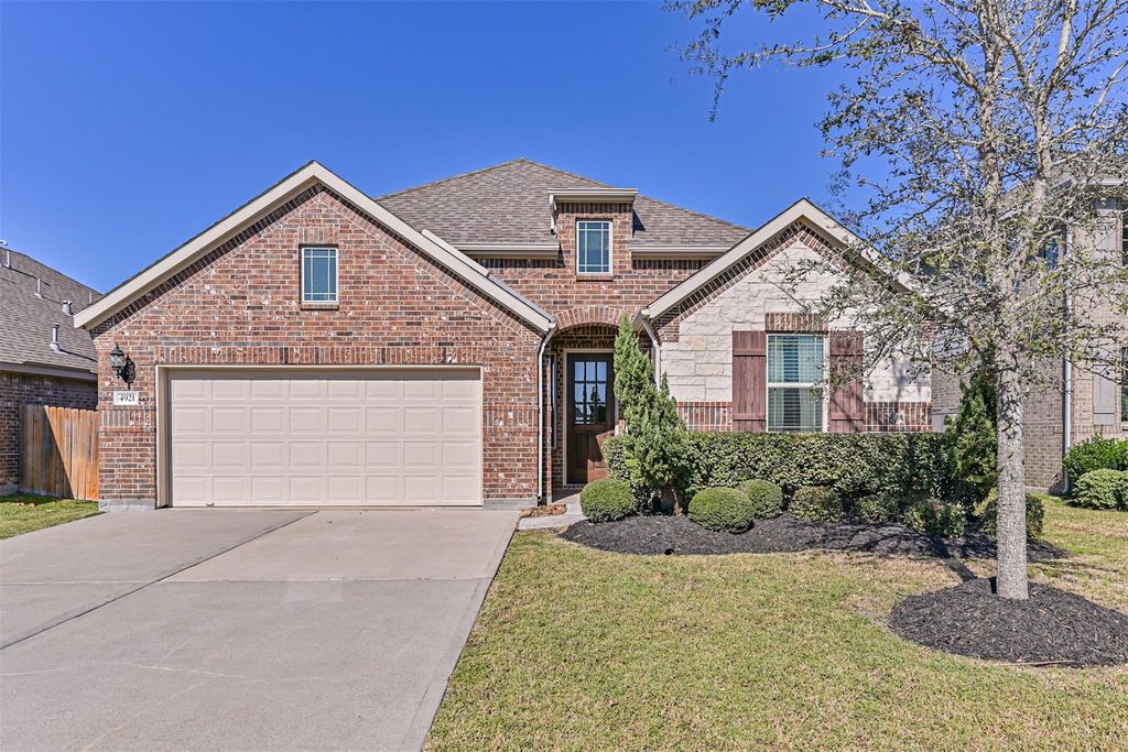 This stunning 4 bedroom home features a flex/study area and 3 full baths. With LVP flooring, 42" cabinets, island kitchen, gas fireplace, a primary bath with walk-in shower and double vanities, office nook, covered back patio, and a stone and brick elevation. Just a short walk away from the pool and park area.