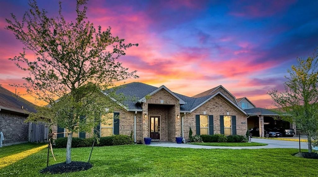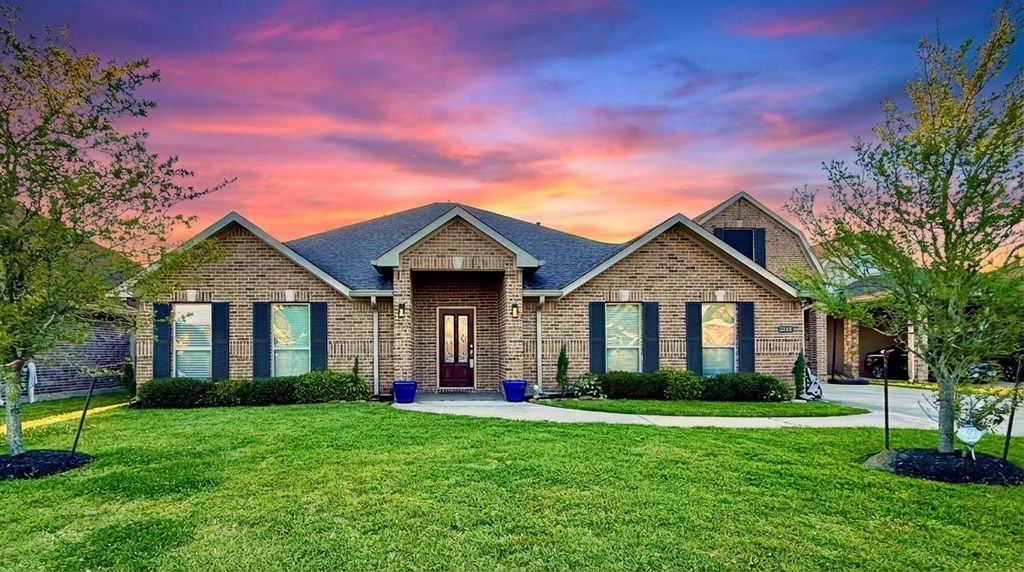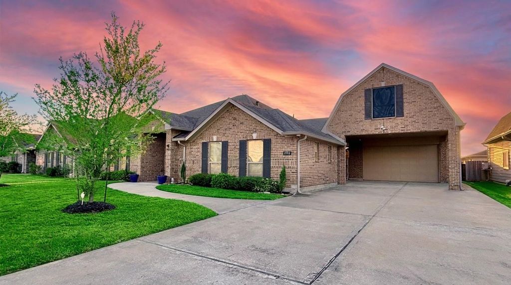 2019 Cervelle Built 254 Plan: a 4 bedroom, 3 full bath one story with oversized flex room PLUS the Big Kahuna Garage with 10-ft ceilings, rear garage door, and living space above that extends over entire garage, including over the 2 car porte-corche. Welcome to Sedona, one of the most desirable neighborhoods in League City: Where we may lack parks & pools, we pride ourselves on our community, spacious “barn” garages, expansive 1-stories, ample backyard space, and benefit from one of the lowest tax rates (1.65) in Galveston County with NO MUD or PID tax! If you appreciate friendly neighbors, family-friendly holiday festivities, and low taxes, bring your golf cart & participate in the many neighborhood parades or prepare to relax & unwind under the expansive new back patio, because this is the one you’ve been waiting for!