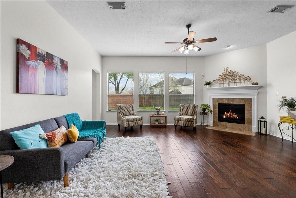 Located in the highly desirable Magnolia Creek subdivision in League City, this beautiful 3/2/2 home with large cul-de-sac back yard offers a perfect place for family & friends to gather. Open concept design creates an atmosphere where everyone feels connected. Formal dining area flows into the generously sized kitchen w/ abundant cabinets & counter space, plus you can enjoy the cozy eat-in area of the kitchen. The large family room has a gas fireplace & large windows looking out into the backyard. The primary bedroom has a generous ensuite w/ walk-in closet . The secondary bedrooms are separated in this split design w/ their own bath & flex space in between them, which could be used for a playroom/office/crafts/library. NEW ROOF, FRESH PAINT AND NEW FLOORING. EXCEPTIONALLY CLEAN AND READY FOR YOU Fantastic location near so many conveniences & walking distance to Gilmore Elementary. Golf course, pools, clubhouse, playgrounds, tennis. Top 10 Most desired communities Magnolia Creek