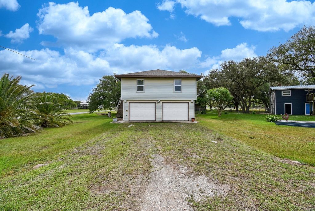 Bay breeze and shade trees await at 225 Swallow Dr. in gated Cape Carancahua. This 3-bed, 2-bath home sits on two lots stretching from Swallow to Bayview with three culverts/driveways and mature shade trees. Furnished and ready to move in, you can drop your bags and enjoy the coastal lifestyle. Upstairs: open-concept living, kitchen and dining, two bedrooms, full bath, indoor laundry and an enclosed porch with wall-to-wall windows overlooking the backyard. Downstairs: third bedroom, second bath, 2-car garage and workshop. Updates include new flooring (2021), new windows with lifetime warranty (2021), new exterior doors (2021), refrigerator (2022) and interior doors (2023). Roof replaced after Harvey with windstorm-rated shingles; A/C 2017. Community amenities: Gated Entry, Community Center, 2 Pools, 3 Lighted Piers, Boat Ramp, Pavilion, Tennis, Volleyball, Playground and Nature Preserves. Ideal as a weekend retreat or primary home. Ready to show.