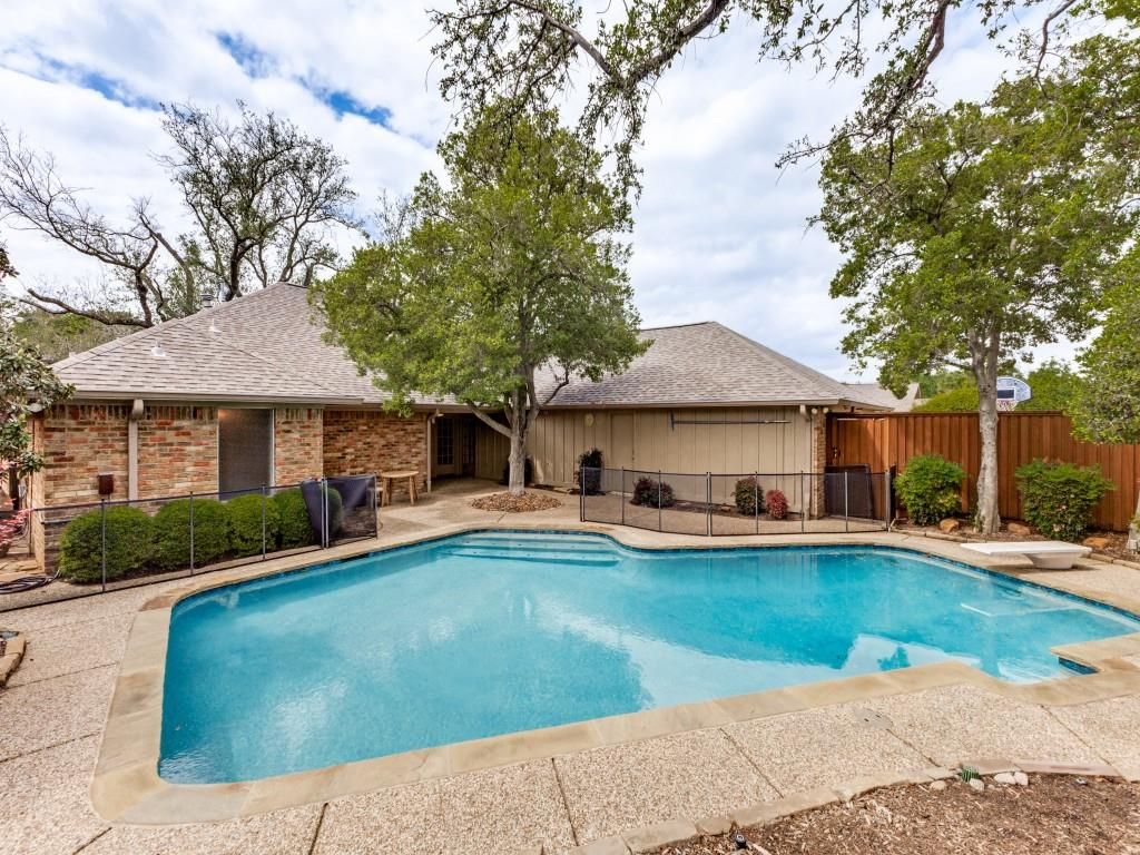 Tucked beneath mature trees in Town Creek, this home invites you to slow down and stay awhile. This beautifully maintained singlelevel home offers four bedrooms and three baths in a setting ideal for family living. Known for custom homes, a winding creek, nearly two miles of walking trails, and an active neighborhood watch, Town Creek provides a peaceful yet wellconnected lifestyle. Inside, the lightfilled layout features vaulted ceilings, hardwood floors, and custom builtins that reflect true pride of ownership. A welcoming entry opens to a spacious family room with views of the backyard and pool, complete with a brick fireplace, skylight, and wet bar—perfect for gatherings or entertaining. Versatile adjoining living spaces offer flexibility for a home office, playroom, or additional lounge. The primary suite serves as a private retreat with soaking tub, generous closet space, and direct access to the backyard and pool. Three additional bedrooms provide room to grow, including a thoughtfully placed split bedroom with a full bath ideal for guests or multigenerational living. Outdoors, the secluded backyard with pool creates a private oasis for relaxed evenings. Ideally located minutes from the Dallas private school corridor, White Rock Lake, the Dallas Arboretum, shopping, dining, and major highways including US75 and I635, this home blends timeless comfort with an exceptional Lake Highlands lifestyle.