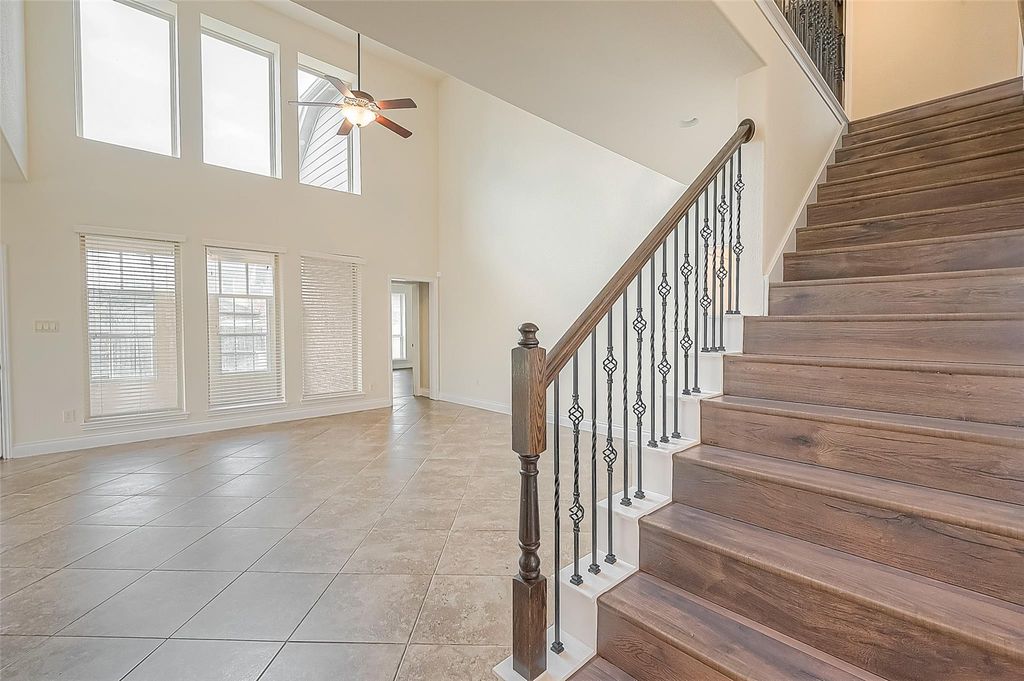 This lovely Perry home is situated on a quiet cul-de-sac street offering great curb appeal in the desirable Aliana master planned community. Walk in to the grand foyer with high ceilings, chandelier, and diagonal tiles from front to back door and NO CARPET IN ENTIRE HOUSE. Immediately to the left is a formal dining with French doors. Continue your journey in the home to discover the large family room with high ceilings. The kitchen comes complete with plenty of granite countertop space, stainless steel appliances, plethora of 42” inch cabinets for storage. Enter the light and bright primary bedroom. Relax in the primary bath that comes with garden tub, shower, double sinks, vanity and a spacious walk-in closet. Upstairs is equally impressive with three large bedrooms, two full baths, and a generous size gameroom. The sunroom is the ideal escape from the rest of the home and relax in. Enjoy weekend BBQs or shoot home hoops on the basketball goal in the backyard.