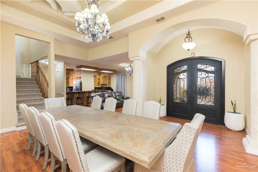Step into this inviting home located in the gated community of Plantation South known for its exceptional amenities and serene setting. This beautifully designed home features 4 bedrooms, 3 full bathrooms, and a 2-car garage across 2683 square feet of living space. This spacious floor plan is enhanced by elegant decorative ceilings, staircase and custom-built cabinetry. The kitchen showcases a charming wine/bar alcove, ideal for entertaining. Step outside to fully fenced backyard, perfect for privacy and gatherings. Residents enjoy a peaceful and secure setting with a strong sense of community. Priced to sell. Schedule a showing today!