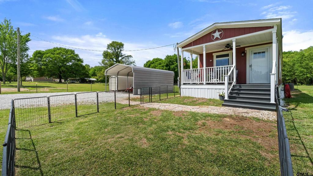 BEAUTIFUL ACREAGE with home move-in ready. Discover an exceptional opportunity to own beautiful 4.48 acres that offers mature shade trees, open cleared spaces, and a peaceful setting. The meticulously maintained 2 bedroom, 2 bath manufactured home (that's only 2 years old) welcomes you with a front porch complete with brand new ceiling fan, perfect for morning coffee or evening relaxation. The home itself boasts everything you've been dreaming of, from decor to functionality. You'll enter and fall in love with the open-concept layout and vinyl planking floors . The stunning kitchen features an expansive kitchen island, and all new stainless steel appliances: refrigerator, dishwasher, stove and microwave. You'll enjoy an abundance of storage and natural light throughout the home as well. The primary suite has a walk-in closet and the bathroom is sure to please with modern walk-in shower and double sinks. The house comes with new washer and dryer making move in even easier! Outside areas are impressive with the long white rock drive, 2 car carport, additional storage building, and pasture that is fenced and cross fenced. Notice the brand new horse wire fence in both pastures, do bring your horses! The aerobic septic system is only two years old. Best of all full price offer includes a 3 year old Kabota zero turn riding mower. Makes maintaining the property a breeze. Whether you're seeking a peaceful homestead, wanting to make this your home while you construct your dream home, or even a weekend getaway, this picturesque property offers endless possibilities, room to breathe, and tranquility. It's move-in ready and waiting for you! Schedule your private showing today.
