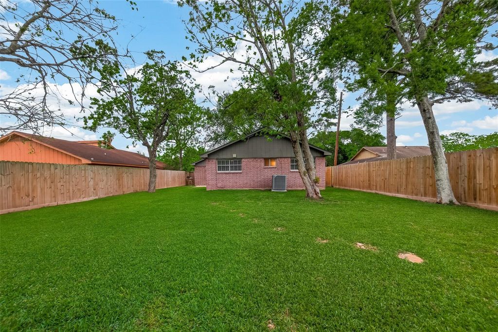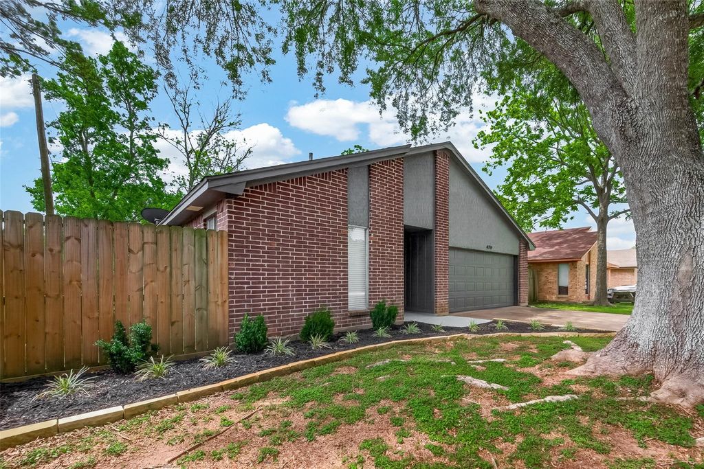 Beautifully updated and thoughtfully designed, this move-in-ready 3-bedroom, 2-bath brick home offers the perfect blend of comfort, convenience, and affordability. Located in Flood Zone X with no flood insurance required and no HOA, ownership stays simple and budget-friendly. The open floor plan seamlessly connects the living, dining and kitchen areas, featuring shaker-style cabinets, quartz countertops, stainless steel appliances, tile backsplash. A large peninsula adds for extra prep space or casual dining. The split floor plan provides added privacy with updated fixtures and vinyl flooring throughout. The spacious primary suite boasts double closets, dual sinks, and a glass walk-in shower. Major updates include foundation leveling, PEX plumbing, HVAC, electrical, water heater, and a new garage door/opener for the spacious 2-car garage. Step outside to enjoy a generously sized fenced backyard with room to relax, entertain, garden, or let pets play.