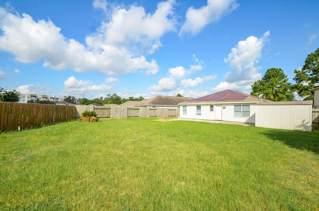incredible potential in a sought-after location. Situated on a quiet cul-de-sac, this one-story property features 3 bedrooms, 2 full baths, and a 2-car garage. The open floor plan includes an oversized living room that flows into the kitchen and breakfast area, ready to be transformed for modern living. The primary suite is generously sized with a large soaking tub, separate shower, and walk-in closet. Two secondary bedrooms share a full bath. Outside, you'll find an oversized backyard and patio—perfect for creating your dream outdoor space. With easy access to I-45, Hardy Toll Road, the Exxon campus, The Woodlands Mall, and top dining options, the location is unbeatable. This is a true fixer-upper with great bones and endless potential, bring your vision!