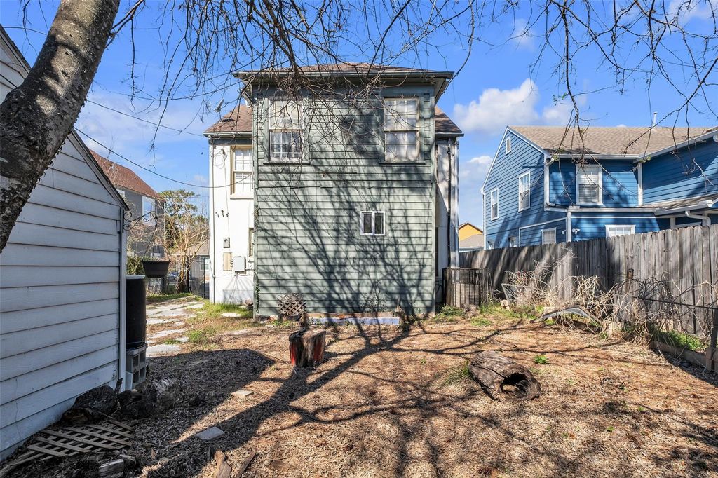 3 bedrooms, 2.1 bathrooms in Houston's 3rd ward. Private gates driveway leading to a double garage with plenty of parking. The home boasts original wood floors and many original features. The entrance hall leads into the living room that has original features and a separate dining room with a half bath conveniently located off the hallway. The kitchen also leads through to the extension with large laundry room, pantry and an additional full bath. Upstairs are 3 bedrooms, full bath and an additional office/flex room. The large backyard had a gate leading to the pathways and trails behind. Being sold 'As is" with lots of potential for a wonderful home.