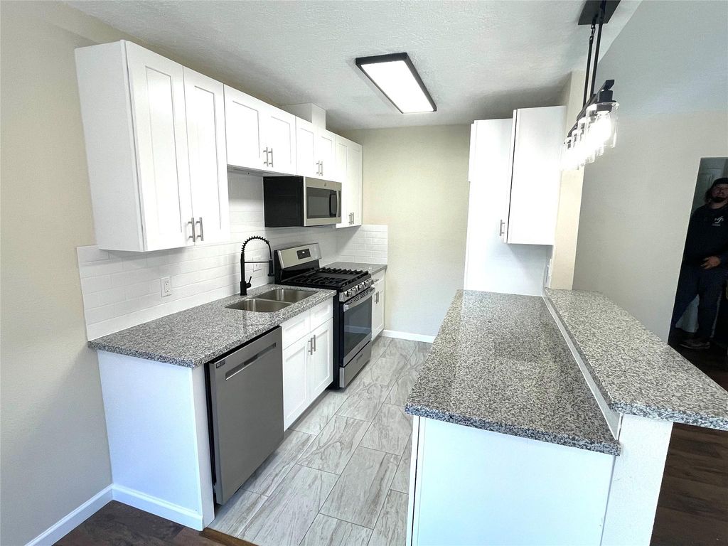 OPEN HOUSE SATURDAY, FEBRUARY 14TH FROM 1-4 PM!!!!! COMPLETELY REMODELED!! Hurry this 3/2/2 won't last! This freshly painted white brick house is the envy of any neighborhood that boosts freshly planted San Augustine grass. Inside the vaulted ceilings in the living area gives the house an elegant and prestigious entry. The completely remodeled open platform kitchen with bar area has soft closing cabinet doors with brand new s/s dishwasher, gas stove and cabinet level microwave. The secondary bathroom also completely new has his and her sinks with separate mirrors. In the large primary suite the bathroom is a thing of beauty, emphasizing a huge walk in glass shower with a large shampoo holder niche. The backyard is much larger than most making the perfect place for children to safely play. Book your appointment today!