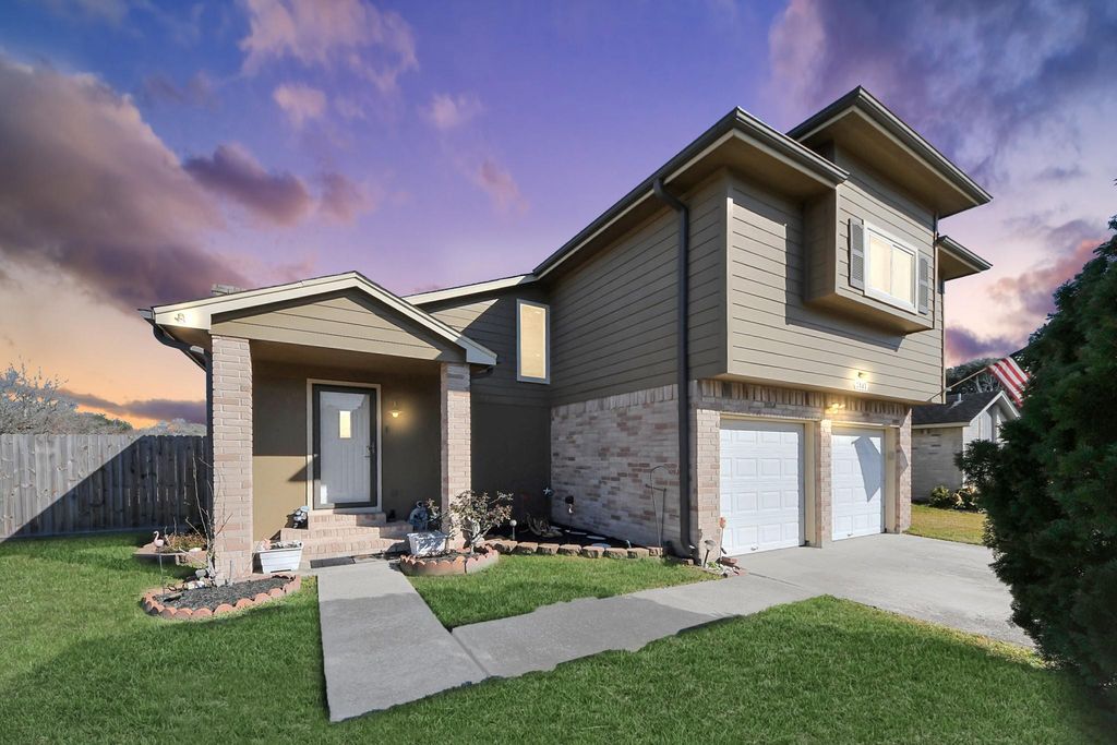 Charming two story home on a desirable corner lot in the Southdown community. This well-kept 3-bedroom, 2.5-bath home offers a functional layout with comfortable living spaces and great natural light. The covered patio overlooks a large backyard—perfect for relaxing or entertaining—and includes a hot tub and storage shed that will remain with the property. Upstairs features all bedrooms, including a spacious primary suite with private bath. Conveniently located with quick access to Hwy 288 and Beltway 8, and just minutes from shopping, dining, and everyday essentials. A great opportunity for buyers looking for a cozy home in highly accessible location to 288, Beltway 8, shopping, and dining.