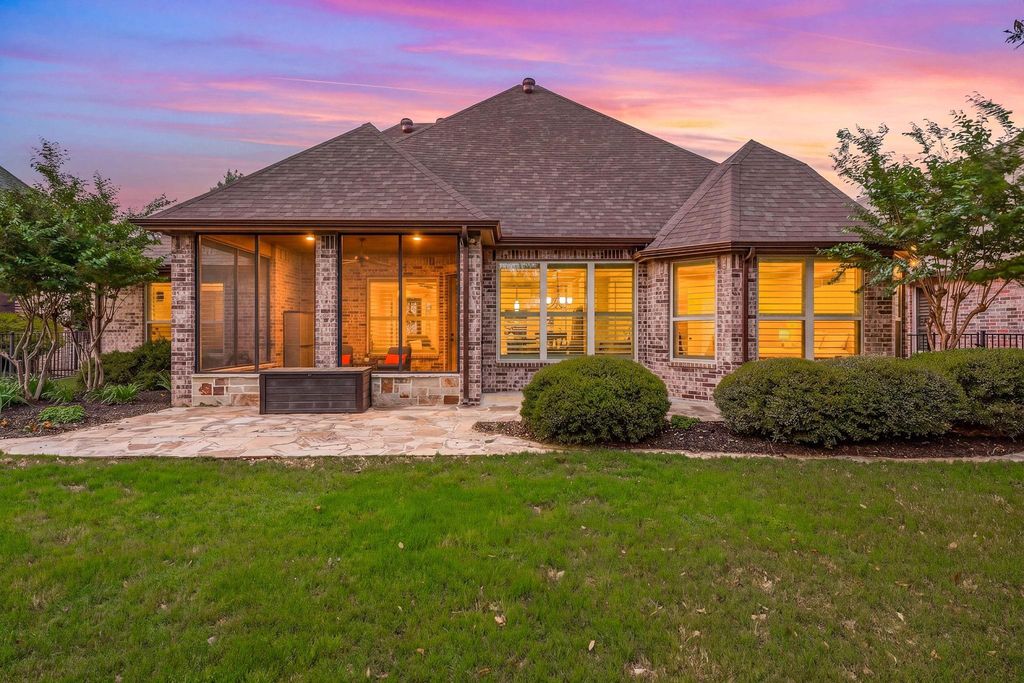 Enjoy living in the gated community of Pecan Plantation, with peaceful fairway views in both the front & backyards. Refined living in this beautifully designed 3-bedroom, 2-bath home with a dedicated office, perfectly positioned on the Nutcracker Golf Course. From the moment you arrive, the stunning iron front door sets the tone for the quality and character found throughout. Inside, rich wood flooring flows through the main living areas, complemented by crown molding, custom cabinetry, & a warm, inviting color palette. The open-concept layout is ideal for both everyday living and entertaining. The kitchen overlooks the living room and golf course beyond. The kitchen is a standout feature, offering granite countertops stainless steel appliances, gas cooktop, double ovens, microwave, refrigerator, pantry, and an oversized island perfect for gathering. A beautifully vent hood, designer backsplash & pendant lighting add a custom touch, while the living area is anchored by a cozy electric fireplace & filled with natural light. The spacious primary suite provides a private retreat with a large ensuite bath featuring dual sinks, a soaking tub, a walk-in shower, and generous storage. Secondary bedrooms and a dedicated office offer flexibility for guests, hobbies, or working from home. Step outside to the enclosed back porch ideal for year-round enjoyment—overlooking the golf course, along with a low-maintenance yard. You can irrigate your lawn from the Pecan Orchard for a minimum of $15 month. Additional highlights include a 2-car garage plus golf cart garage and walk-up attic access for convenient storage. Many amenities to enjoy including two golf courses, clubhouse, 2-pools, parks with Brazos River access, walking trails, playground, dog park, sports fields, grocery store, dining, medical clinic, veterinarian, Ace Hardware, car wash, gas station, lake access with a marina, RV park, archery, community garden, 2 air strips, hotel at clubhouse, tennis & even pickle bal