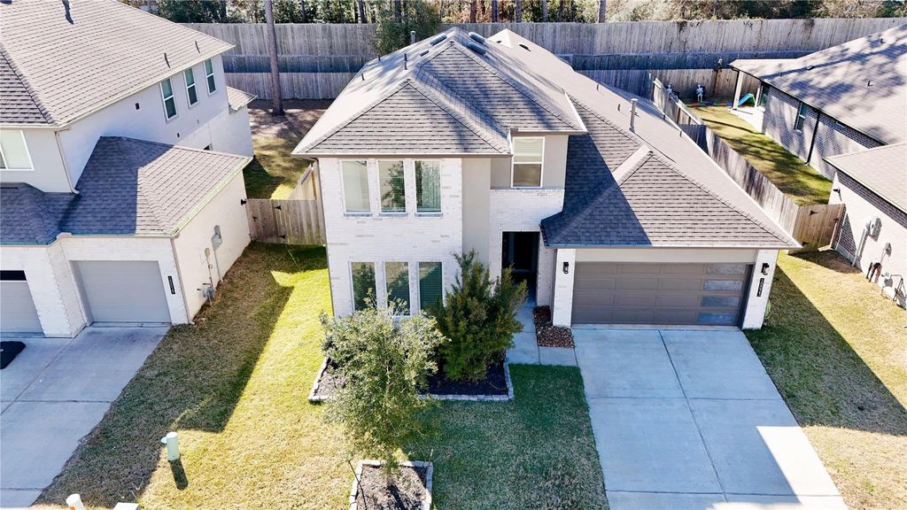Beautiful two-story home with 2 car garage. Quiet and Good size back yard. Home features gorgeous brick and stucco exterior and includes 4 bed/3bath and a GAMEROOM! Features include SS appliances w/gas burner cooktop, Silestone, and 42" cabinets in Kitchen, Separate shower, Smart Home Package, Solid Surface Flooring throughout 1st floor, Tankless Water Heater, Covered Patio, and Full Sprinkler System. Fosters Ridge offers beautiful community center, playground, and pool. Zoned to The Woodlands Excellent Schools.