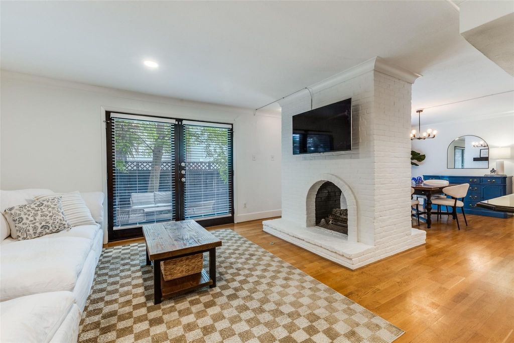 Do not miss this exceptional first-floor 2-bedroom, 2-bath condo in the highly sought-after Tuscany Condos—offering easy living, a rare layout, and an unbeatable Dallas location. This corner unit features warm hardwood and tile flooring throughout (no carpet), a beautiful kitchen with stainless steel appliances and granite countertops, and two spacious living areas anchored by a stunning double-sided fireplace that adds charm and character. The thoughtfully designed floor plan provides comfortable, versatile living with generously sized bedrooms and two large baths. The primary suite is oversized with a sitting area and a huge walk in closet. One of the standout features is the outdoor living space, a large patio area, complete with multiple French doors that seamlessly bring the outdoors in—perfect for entertaining or pets. Additional highlights include two covered, assigned, secure parking spaces just steps from the unit, plus a refrigerator, full-size washer, and dryer included in the sale, along with fresh paint, new dishwasher and much more. The Tuscany community has recently completed an impressive $800K renovation, enhancing its appeal with resort-style amenities such as a pool, hot tub, fitness center, outdoor grills, and tranquil fountain courtyards, all within a gated and secure setting. Ideally located near Central Market, Lower Greenville, SMU, Mockingbird Station, White Rock Lake, Katy Trail access via Ridgewood Trail, this home offers both convenience and lifestyle—making it a perfect blend of comfort, style, and location. This one is more than a condo, it's a rare blend of space, style and location-it's a lifestyle you will enjoy everyday and a place you will truly love to call home!