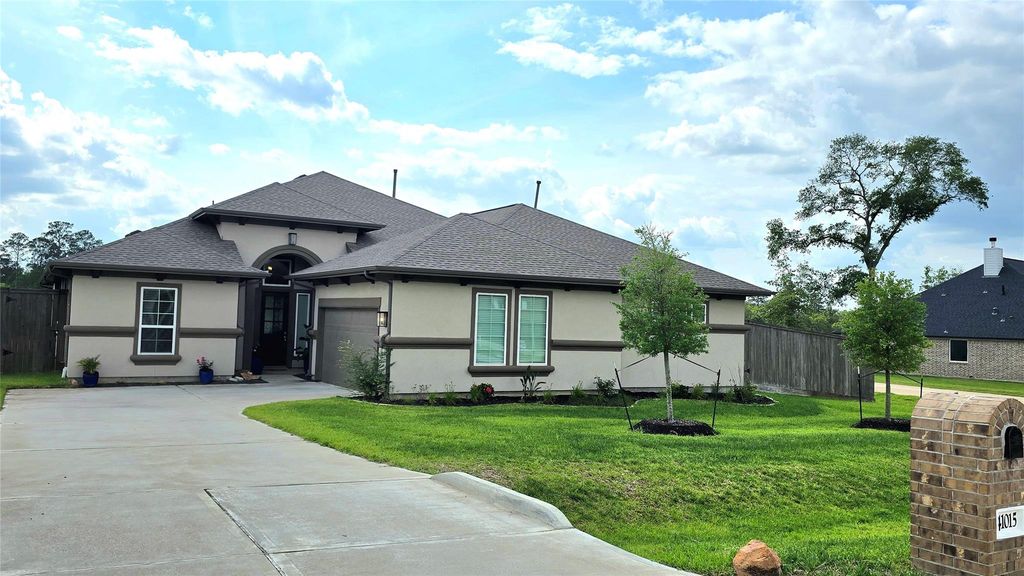 PROF PHOTOS COMING. No showings until open house Sat. Thinking of moving further out for a little more land and fresh air? Don’t miss this stunning home tucked away in the exclusive Mostyn Manor Reserve, in fast-growing Magnolia. Your daily drive home will take you down a picturesque country lane with horses grazing in green pastures. As you meander through the hills (yes, hills!) of Mostyn Manor, you’ll fall in love before you even get to Kimber Lane. This barely-lived-in home is only 2 years old, with seller-added extras, like a capped privacy fence as well as full set-up for your future home generator. The open great-room style layout offers large, livable spaces with big bedrooms, walk-in closets and loads of extra storage. High ceilings allow natural light to flood every room, with numerous luxury touches and architectural details. Enjoy hiking the trails or spend the day at the community lake. Host barbecues on your covered patio, as you plan your future backyard paradise.