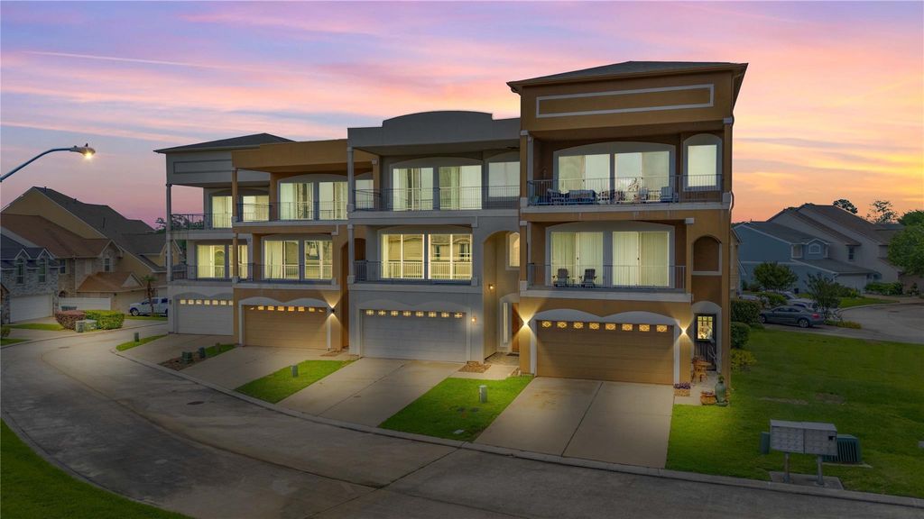 Over 4,400 sq ft of Waterview living—an exceptionally rare find on Lake Conroe. Located in the gated Harbour Town community known by it's iconic lakeside lighthouse, this 3-story condo offers a level of space and flexibility not typically found in the area. Multiple living areas, large windows, and private balconies on every level create an ideal layout for both everyday living and entertaining. The second floor features an open-concept kitchen, dining, and living space. The third-floor primary suite provides a private retreat with balcony, fireplace, and spacious bath. Additional bedrooms offer en-suite baths and private outdoor access. An in-home elevator provides convenient access to all levels. Enjoy access to marina, boat ramps, pool, tennis, and more—just minutes from I-45, The Woodlands, dining, and shopping. Ideal for full-time living, weekend use, or multi-generational households with space, privacy, and flexible living across all three levels.