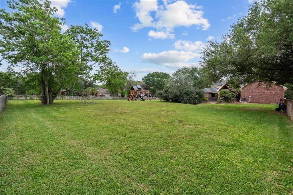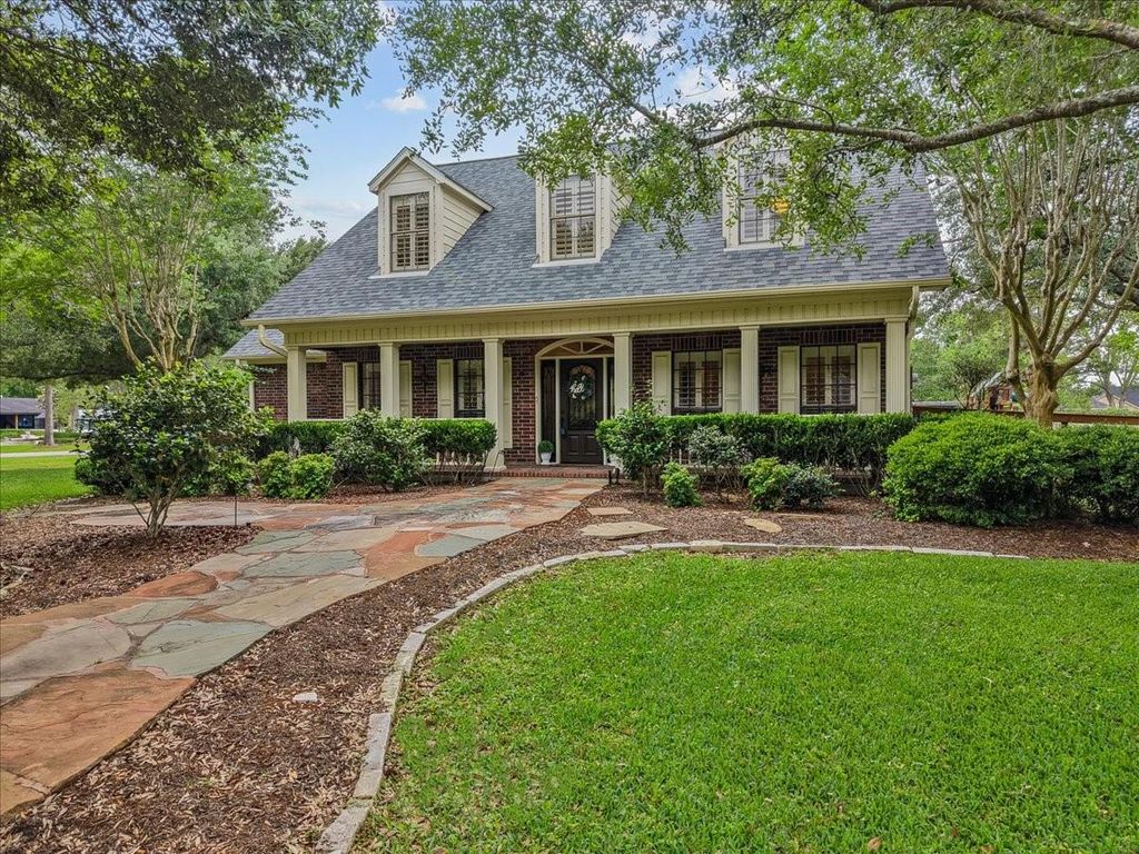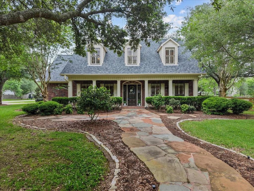 Welcome to 408 Allan Street in the heart of Friendswood! This charming custom home is on a corner lot situated on almost a full acre! Bring the family to this 5 bedroom, 3 full bath and 1 half bath! Home offers beautiful French country charm throughout! Gorgeous entry and well-appointed home/office study as you enter. High ceiling living area overlooking the custom patio extension! Living room has wood floors, gas stone fireplace and built-ins. Gourmet kitchen has Viking range, stainless steel appliances and custom touches! Two bedrooms are down for convenience with two full baths! Primary has primary en suite that includes clawfoot tub, walk-in shower and beautiful Travertine floors! Upstairs you will find 3 more bedrooms and full bath. Separate staircase takes you to your optional game-room or make it a 6th bedroom! Outside you will find a dramatic vaulted patio with fireplace, outdoor kitchen and pool! The 3-car garage with wide driveway completes this home! MUST SEE!