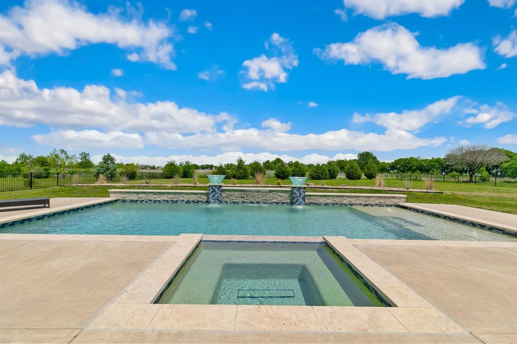 Welcome to a stunning Country French-style luxury estate, entertaining galore in an exclusive gated community. Situated on a fully fenced 1-acre lot with NO CITY TAXES, this exceptional home features 5 spacious bedrooms, 4 baths, and a thoughtfully designed layout perfect for both everyday living and hosting unforgettable gatherings. Step inside to discover an elegant open-concept design with a grand living area featuring a built-in bar, ideal for entertaining. The luxurious primary suite offers a spa-inspired bathroom and his-and-hers walk-in closets. Upstairs, enjoy a versatile game room, a media room that can easily serve as a mother-in-law suite, and an additional wet bar for the ultimate entertainment experience. Step outside into your private backyard oasis—complete with a saltwater pool and spa, tanning ledges, and an extended covered patio perfect for year-round enjoyment. A charming courtyard adds even more space to relax and entertain under the Texas sky. And let’s not forget the views—enjoy peaceful sunrises from upstairs windows and breathtaking sunsets from your own backyard retreat. This home seamlessly blends luxury, comfort, and lifestyle, making it a rare opportunity for buyers seeking space, privacy, and upscale living in North Texas.