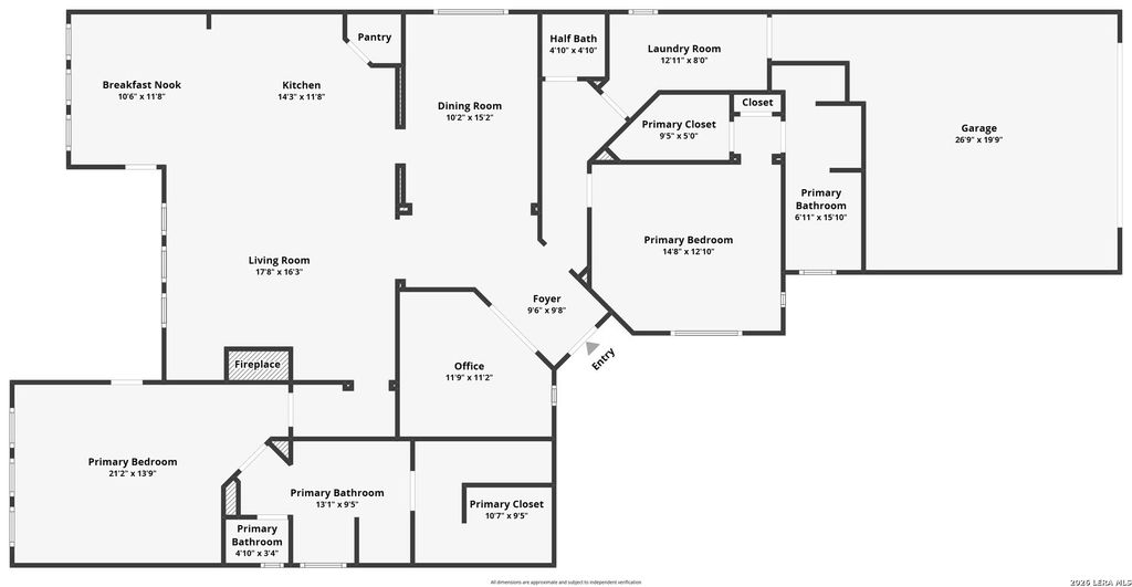 Located in a desirable gated community, this rare single-story home offers 2,368 square feet of thoughtfully designed living space with an open-concept layout and the unique advantage of two oversized primary suites, along with an attached 2-car garage. A flexible study or office provides a dedicated work-from-home space, while the charming courtyard entry creates a warm and inviting first impression. Residents also enjoy access to a community clubhouse, adding to the neighborhood's appeal. Inside, the home feels bright and airy with high ceilings and a living room centered around a gas log fireplace, making it an ideal setting for both relaxing evenings and entertaining guests. The kitchen is both stylish and functional, featuring 42-inch cabinets, granite countertops, a gas cooktop, stainless steel appliances, a breakfast bar, and a cozy breakfast area filled with natural light. The open flow between the kitchen and living areas enhances everyday living and makes hosting gathering