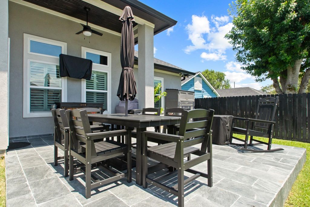 This beautiful home was Built in 2023. Exterior has Stucco & Stone, Stunningly Designed one of a kind in La Porte! This beautiful home features Custom 6x9 double wrought iron front doors, beautiful 24x48 porcelain floors throughout the entire home, the Kitchen offers stunning Quartz countertops with all Stainless steel appliances, also Quartz in all bathrooms, and parts of the Living Area. High 14" ceilings with Custom Crown Molding in living room & High 10" Ceilings in Bedrooms also with custom crown molding. Custom 4.5" Baseboards throughout, Home is Prewired for Alarm System and also with Security Cameras already pre installed. The garage is equipped with Smart Wi-Fi Garage opener with a Built-in camera. Foundation sits on 27 Builder Piers (8ft Deep). Home has Foam Insulation throughout. This beautiful home is conveniently located close to award winning schools, state-of-the-art library, easy access to Houston Ship Channel and best of all just minutes away to the Sylvan Beach.