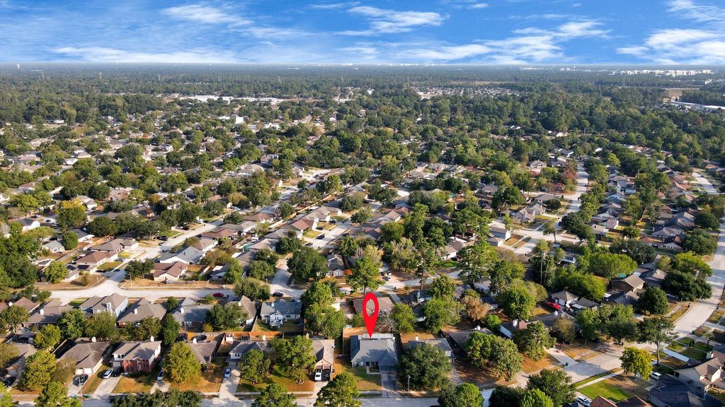Welcome Home! This spacious home truly has so much to offer!. 4 spacious bedrooms, 2 bathrooms, formal dining room, breakfast area, office/ study room, covered patio, 2 car garage, utility room inside the home. The family room features a wide opened area with a high ceiling & floor to ceiling fireplace. Ceiling fans in all bedrooms plus family room. Breakfast bar that overlooks the family room for extra seating. The primary suite has a large walk-in closet with custom shelves and a primary bathroom with separate shower and garden tub. Your new backyard has an oversized covered patio with plenty of room for your family gatherings and space for the entire family & pets to enjoy. Conveniently located in close proximity to I-45, the Grand Parkway, The Woodlands and Tomball to the West.