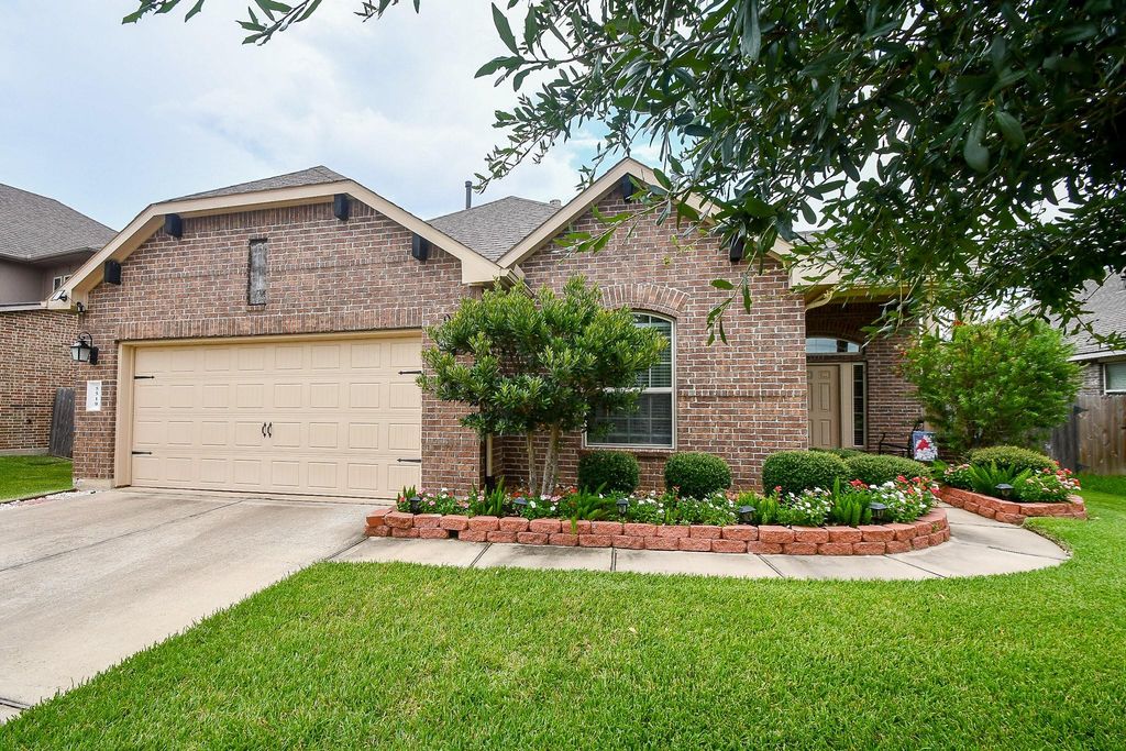 This charming single-story brick home boasts incredible curb appeal with lush green grass and meticulously manicured landscaping. Step inside to find a formal dining room just off the front entrance, perfect for entertaining. The spacious living room features a cozy fireplace and large windows that fill the space with natural light and offer views of the backyard. The kitchen is equipped with stainless steel appliances, a central island, and a walk-in pantry, and it opens seamlessly to the breakfast nook with backyard access. The private primary suite includes a spa-like ensuite bathroom with a soaking tub, separate glass-enclosed shower, and walk-in closet. Enjoy outdoor living in the fully fenced backyard with a covered patio and ceiling fan—ideal for relaxing or hosting guests. This home combines comfort, function, and style in every detail.