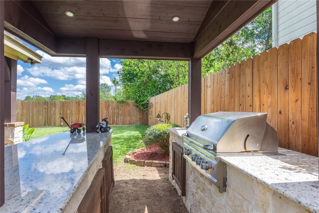 Welcome to this beautifully updated 1-story home in the sought-after Louetta Lakes community, conveniently located near I-45 and Grand Parkway (99). This 4-bedroom, 2-bath home offers a functional layout with a dedicated study and a spacious game room all on one level. The home features extensive upgrades throughout, including a completely renovated kitchen and updated primary and secondary bathrooms, giving it a fresh, modern feel. Situated at the end of the street, the property offers added privacy and charm with its inviting front porch and brick elevation. Step outside to an impressive covered patio and outdoor living space—perfect for entertaining—complete with an outdoor kitchen, fire pit, and storage shed, while still leaving plenty of yard space to enjoy. An oversized garage with extra storage space provides added convenience and functionality. This home truly combines comfort, style, and outdoor living in a prime Spring location.