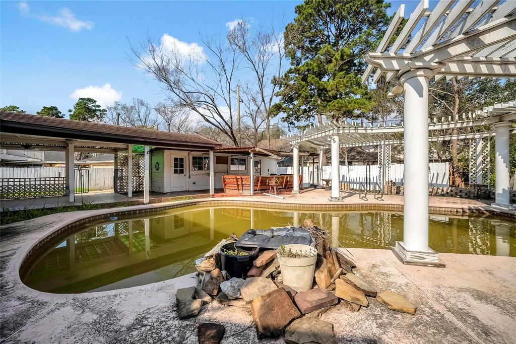 Beautiful 4-bedroom home featuring a spacious layout with a living and dining combination, plus a large family room and game room which is perfect for entertaining. The kitchen opens seamlessly to the family room, creating a warm and inviting space. The oversized primary suite offers a relaxing retreat with double sinks, a soaking tub, and a separate shower. Step outside to enjoy your private backyard oasis complete with a swimming pool and two covered patios, ideal for outdoor gatherings. This unique home also includes 3.5 bathrooms and an extended 4-car garage with an iron gated fence. Conveniently located near The Woodlands with easy access to I-45, FM 2920, Grand Parkway, Hardy Toll Road, and Beltway 8. With a little TLC, this home offers incredible potential!