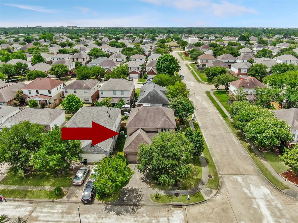 Hard to find four bedroom Katy home under $300k on oversized corner lot with gorgeous mature landscaping & towering trees! Freshly painted interior with a wonderful backyard and enormous covered deck. Laminate wood & tile floors throughout. Big den/living room with corner fireplace, wall of windows, & crown moulding. Kitchen with breakfast bar, tile backsplash & gas cooking range. Primary suite on the main level with attached ensuite featuring double sinks, deep garden tub, separate shower & walk-in closet. Large flex room upstairs that can be a game room, secondary family room, or study. Spacious secondary bedrooms with 2 inch window blinds. Great location with easy access to I-10, hospitals, schools, parks, shopping, dining & more. Low tax rate and no flooding ever. This home will not last long so call us today for more information and a private showing.