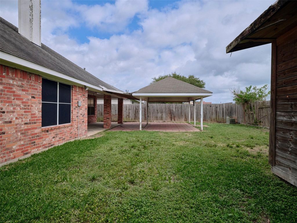 Come on in! New paint throughout April 2026! NO HOA & NO MUD Tax! As you step inside you will find a spacious living room with a fireplace perfect for gatherings. The kitchen offers lots of cabinets with great counterspace and a breakfast area. Off the kitchen you will find the 5th bedroom that was converted from a garage. All the bedrooms are spacious with good size closets. The primary bedrooms offers great space with a large walk in closet and ensuite bath offering a shower and soaking tub. Outside you will find a covered patio and workshop. This home is ready to sale! Don't wait make your appointment today!