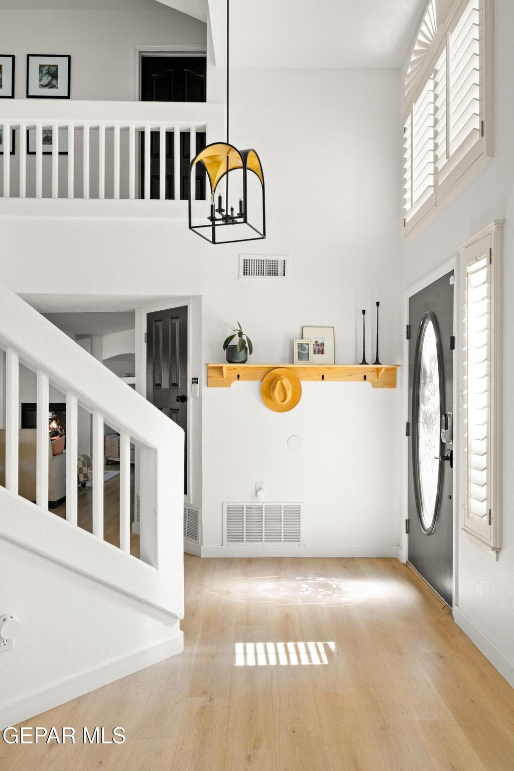 1645 PLAYA DEL SOL Street is listed for sale at $ 435,000. The Single Family property has 3 bedrooms, 2 Full Bathrooms, 1 Half Bathroom, 2214 square feet and was built in 2004. The lot size is 0.16 Acres. ##BR##Welcome home! This fully remodeled home sits on a cul-de-sac with stunning mountain and sunset views. Upon entry, the home radiates with natural light through plantation shutters and seamlessly flows into spacious living areas. Updated kitchen features include stainless steel appliances, quartz countertops, and farmhouse sink overlooking the backyard. Upstairs includes 3 bedrooms, 2 updated bathrooms, and a loft with access to a large balcony with several mountain views. The backyard oasis has gated pool, hot tub, mature palms, shaded pergola, and covered patio--an entertainer’’s dream! Conveniently located near Reyes Elementary, Cimarron shops, Lost Dog Trail, and Fort Bliss. Some photos have been virtually rendered.