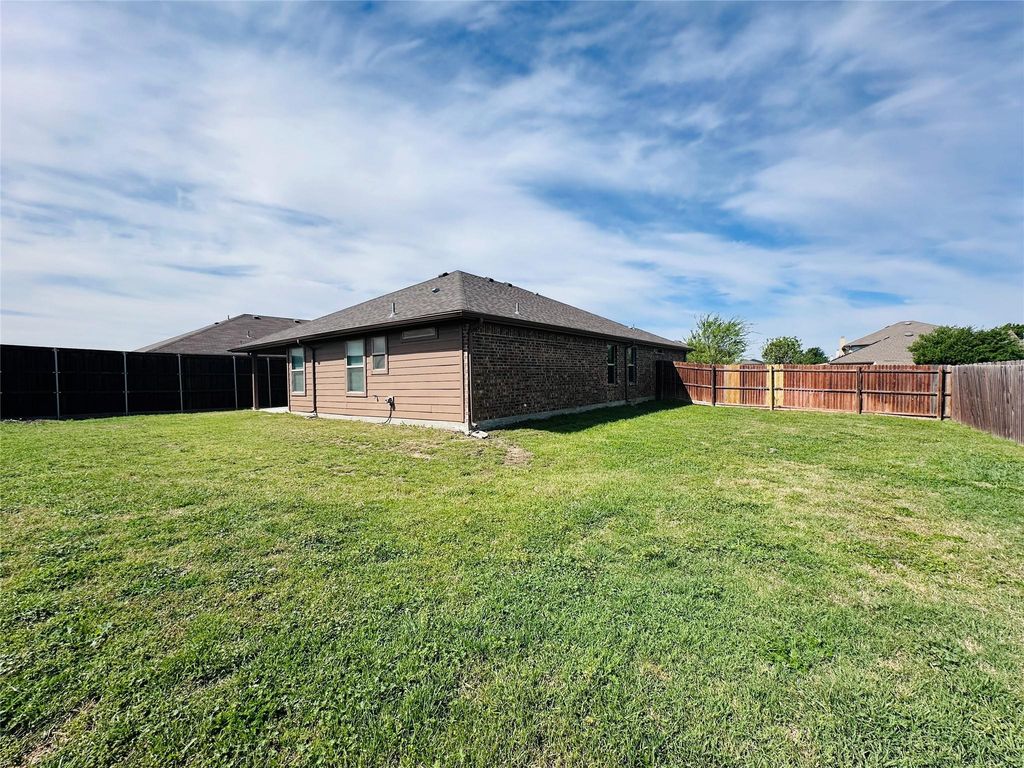 Beautiful home in Ponder ISD move-in ready! Kitchen features stainless steel appliances, stainless refrigerator, granite counters, backsplash and large island overlooking the living room. Living area off the kitchen features views of the backyard and the covered patio. Primary suite has tons of natural light and features a large ensuite bath with double vanity and walk in closet. Large backyard with plenty of space for summer barbeques and gatherings!