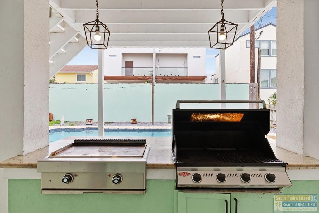 Welcome to your South Padre Island retreat at 119 E. Cora Lee, a beautifully designed coastal home just steps from the beach. This 4-bedroom, 3.5-bathroom property offers an excellent opportunity for both personal use and investment, with a layout ideal for hosting. Located less than half a block from the shoreline, the home features a private pool, hot tub, and outdoor kitchen, perfect for relaxing or entertaining. Inside, the second-floor living area showcases high vaulted ceilings, abundant natural light, and an open-concept layout connecting the living, dining, and kitchen spaces. The primary suite offers a king bed, Murphy bed, private bath, and balcony access. Additional bedrooms are spread across all levels, including one with direct pool access, providing flexible accommodations for large groups. The home is equipped with Class 3 hurricane impact windows for added durability and peace of mind. With a prime location and strong rental potential, this is a great opportunity!