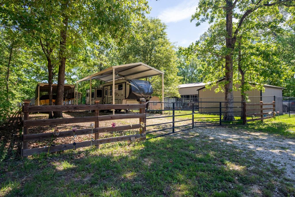 This lot is ready for a weekend of fun with your RV and boat! Electric, water, and sewer are in place. An 18X40 awning is ready for your RV, along with a 12X24 awning for your boat or golf cart. The lot is completely fenced with an extra-large double iron gate. There is plenty of shade, along with a limestone-based driveway. The gated subdivision offers a clubhouse, community pool, boat ramp, and park area. Cabins are available for rent for extra guests too!