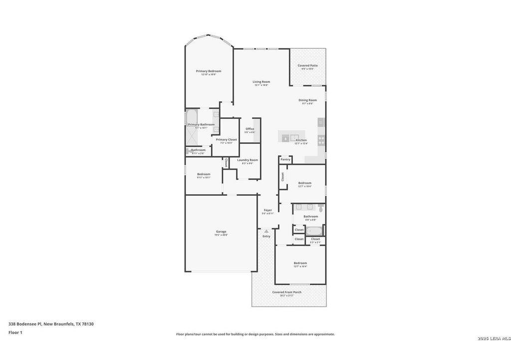 Stunning single-story home in New Braunfels offering 3 bedrooms, 2 full bathrooms, plus an office designed with both style and functionality in mind. This beautifully maintained home features an open-concept layout, high ceilings, and abundant natural light throughout. Step inside to a spacious living area that seamlessly connects to the dining space and chef-inspired kitchen-perfect for entertaining. The gourmet kitchen showcases a large center island, sleek quartz countertops, stainless steel appliances, custom cabinetry, and designer pendant lighting. A built-in workspace/desk area adds convenience for remote work or homework. The private primary suite is a true retreat, featuring a spa-like bathroom with dual vanities, a soaking tub, separate glass-enclosed shower, and a generous walk-in closet. Secondary bedrooms are well-sized and thoughtfully positioned. Enjoy indoor-outdoor living with a covered patio overlooking a spacious backyard. Additional highlights include a 2-car garage