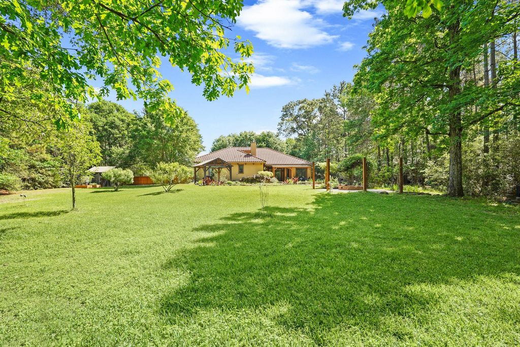 Live at one with nature in this custom Mediterranean home nestled on a beautiful 2 acre wooded lot offering complete privacy & seclusion surrounded by forested acreage. A garden lovers delight with an abundance of unique local flora & wildlife creates a country sanctuary. Featuring high ceilings, extensive wood floors, home office, formal dining, sunroom or formal living, large primary bedroom overlooking the beautiful garden & pool, en-suite bath with walk in shower, granite countertops & whirlpool tub.3 secondary bedrooms with 2 full baths. One of the baths also serves as a pool bath with access to the patio area. Gourmet kitchen with huge island & breakfast bar. Energy efficient with spray foam insulation & tiled roof. Upstairs a huge game room, 1/2 bath plus a bonus area perfect for crafts or a second office. Oversized 3 car garage. Salt water pool with spa & rock water feature. Property sits on two lots with an option to purchase an additional acre to the left of the property.