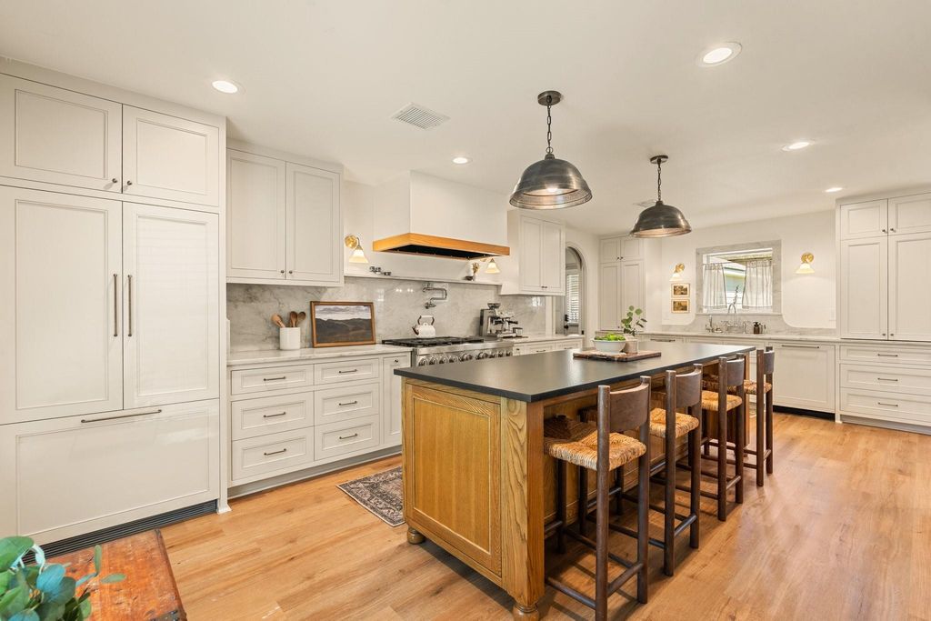 This is a rare chance to own a beautifully designed home with a true chef’s dream kitchen. Thoughtfully upgraded with the help of a high-end local Houston design firm, every detail was carefully considered. The kitchen is the heart of the home, featuring a custom, furniture-style island with bun foot detailing with a black granite countertop, panel-ready appliances; fridge, dishwasher, appliance cabinet and garbage. Other charming details include an arched pocket door, gallery wall with The Frame Art TV (included) & KitchenAid double oven with 6 burners & a griddle with pot filler. The quartzite countertops finishes are truly one-of-a-kind for this price point. Functional updates include new roof('24), HVAC ('25) a new water heater ('26), new downstairs flooring ('26), new garage door ('25) and PEX plumbing ('24) throughout. The neighborhood offers great amenities like two pools, tennis & pickleball courts, parks, playgrounds, & even Saracen Park horse boarding stables!