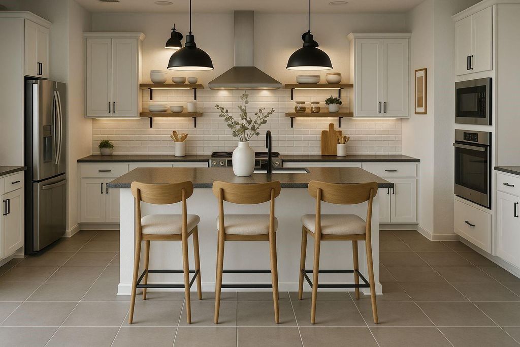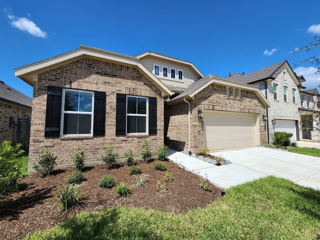 Brand new K. Hovnanian home featuring 4 bedrooms and 3 full baths, including a versatile in-law suite with private bedroom, full bath, and space for a living room or office. Designed with modern farmhouse charm, the home boasts a white kitchen with sleek black countertops, all appliances included, plus an alarm system for peace of mind. Enjoy a lake view and an unbeatable location near top schools, shopping, and just minutes from Grand Parkway 99. Experience the incredible Marvida amenities; parks, trails, pools, lazy river, and pickleball courts. Available 5/1/26