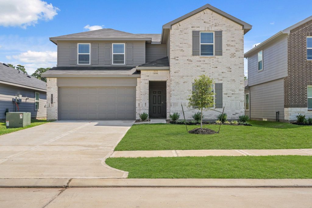 OUTSTANDING NEW D.R. HORTON BUILT 4 BEDROOM IN GRAND PINES! Sought-After Layout with Two Bedrooms Down AND Versatile Gameroom! Impressive Foyer Leads to Gourmet Island Kitchen with Large Corner Pantry, Spacious Dining Area, & Adjoining Living Room! Privately Located First Floor Primary Suite Boasts Luxurious Bath with Large Shower! Convenient Indoor Utility Room! Fantastic Outdoor Space with Covered Patio + Sprinkler System Included! Great Community with Pool & Playground - PLUS Easy Access to the Grand Parkway, the City of Tomball, & the Rapidly Growing City of Magnolia! MOVE-IN READY!