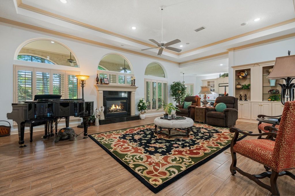 Welcome to your dream home in the exclusive gated community of Teaswood, a highly desirable Lake Conroe area neighborhood. This custom-designed, one-story estate is set behind a double gated circular driveway on 1.56 lushly landscaped acres, offering unmatched privacy & elegance. With 5 spacious bedrooms, 5/2 luxurious baths, & a 4-car garage, this 5,678 square foot residence has been thoughtfully updated to provide a seamless flow throughout, perfect for both comfortable everyday living & effortless entertaining! Inside, you’ll find two private primary suites—ideal for multi-generational living or extended guests—as well as separate guest quarters for added flexibility. The gourmet kitchen features high-end finishes & opens to inviting living spaces filled with natural light. This home is pristine inside & out, with every detail carefully maintained & upgraded to reflect a timeless design and modern convenience.. Don't miss your chance to experience the beauty, space, and sereni