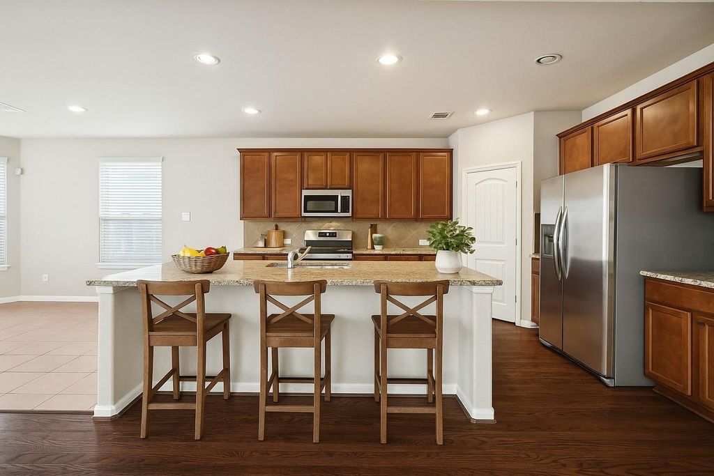 Welcome to this stunning corner-lot home in the heart of Spring! Designed for both comfort and elegance, this two-story beauty features soaring ceilings, sunlit spaces, and new hardwood flooring throughout. The open-concept layout flows seamlessly from the grand living area to a chef-inspired kitchen with a striking granite island and brand-new stainless steel appliances—perfect for gatherings and everyday living. Retreat to spacious rooms that offer plenty of flexibility and comfort. Step outside to a covered patio overlooking a generous backyard, ideal for relaxation or entertaining. Enjoy modern conveniences like an automatic sprinkler system and a three-car garage for all your storage needs. Conveniently located near Grand Parkway, Hwy 249, and I-45, with easy access to top-rated Klein schools, shopping at The Vintage, and outdoor fun at Meyer and Collins Parks—this home truly offers the perfect blend of style, space, and location.