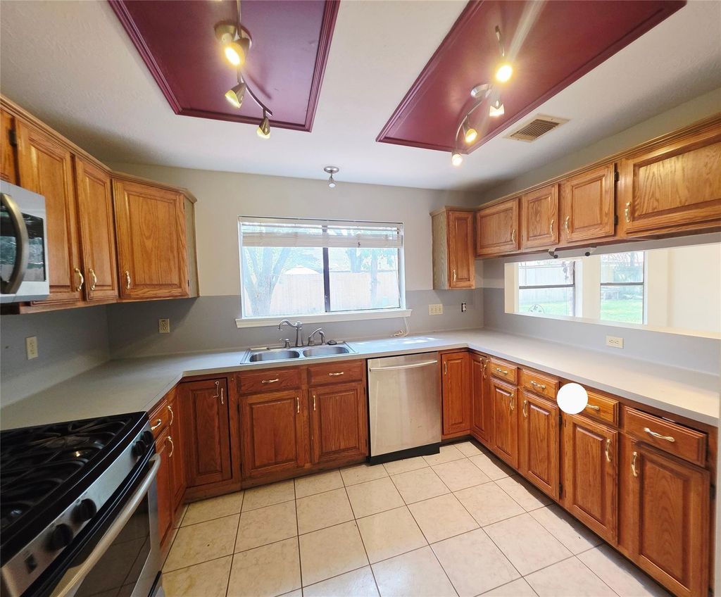 Nestled on a charming corner lot, this home boasts stunning light fixtures and ceiling fans throughout. The inviting wood burning fireplace adds warmth and character. The spacious master suite features a luxurious en-suite bath with a shower and tub, as well as a large closet. Outside, the beautifully landscaped backyard offers a generous patio area for outdoor enjoyment. Located in a desirable area, this property is a true gem.