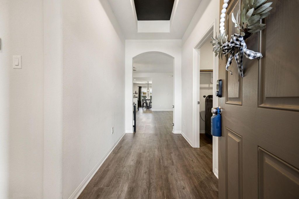 Step into easy, modern living in this spacious and immaculate home, ideally situated in the beautiful Grand Oaks Reserve Golf Course community. Built in 2021, this energy-efficient home features high ceilings, an open layout, and oversized bedrooms with large closets. Modern touches include all new flooring throughout, app-controlled smart lighting, a water softener, and security cameras. The impressive kitchen features granite countertops, stainless steel appliances, a gas range, and walk-in pantry. The private primary suite offers a spa-like retreat with a soaking tub, double vanity, and separate shower. Outside, relax or entertain on the covered patio with a gas hookup in the fully fenced backyard. Community perks include walking trails, a bistro, pool, and beautiful green spaces—all just 4 minutes from the local high school. This home blends modern comfort with thoughtful detail to create the ideal setting for everyday living. Don't miss this beautiful home!