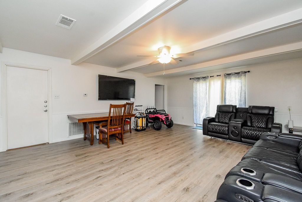 Nice Oak Forest Area 3 Bedroom Corner Lot Home with fenced back yard. Large 2 car garage and extra parking available. Engineered flooring and large living/dining combo room with breakfast bar. All appliances included Washer Dryer, Refrigerator, Microwave, Stove. Very liveable and spacious home.
