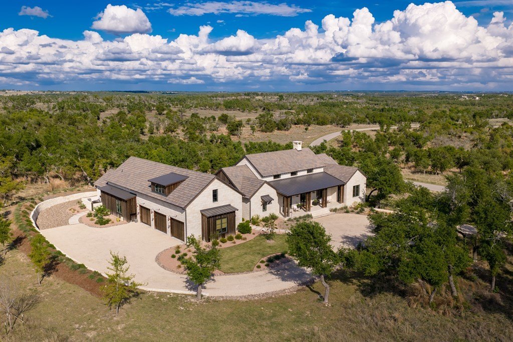 Tucked into the rolling Hill Country landscape of Boot Ranch, 29 Brenham Trail (Lot 793) offers a rare blend of privacy, flexibility, and refined indoor-outdoor living. Thoughtfully designed, the main residence features a spacious one-bedroom layout with a dedicated office that can easily be converted into a second bedroom, making it ideal for both full-time living and weekend escapes. Inside, the open-concept living area is anchored by striking wood beam ceilings, creating warmth and architectural character while seamlessly connecting the kitchen, dining, and living spaces. Expansive glass windows open completely, blurring the line between indoors and out and extending the main kitchen into a fully equipped outdoor kitchen