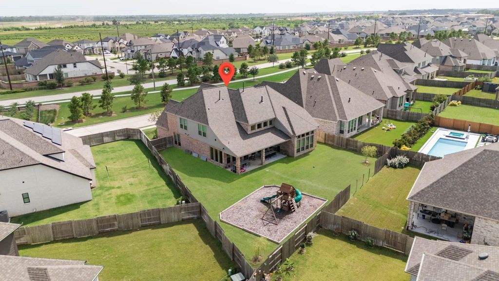 Immerse yourself in upgraded living in Katy ISD's masterplanned Elyson community. This Perry home features a premium 12,216 sq. ft. lot, carefully planned and ready for a future pool & outdoor kitchen. Generax generator, water softener, and bicarbonate drinking water spout in the kitchen. Custom details include wainscoting, luxury vinyl planks, shutters, and electric roller shades. Custom fireplace with wood molding all the way to the ceiling, upgraded fixtures, and quartz countertops. Formal dining. Media room and game room upstairs, mounted fans in every bedroom, extended patio (50x20), and smart home features. Additional highlights: custom entryway, custom wood molding, recessed lighting, Additional built-in shelving & sink in the laundry room. ADT-monitored alarm system. Ready for immediate move-in.