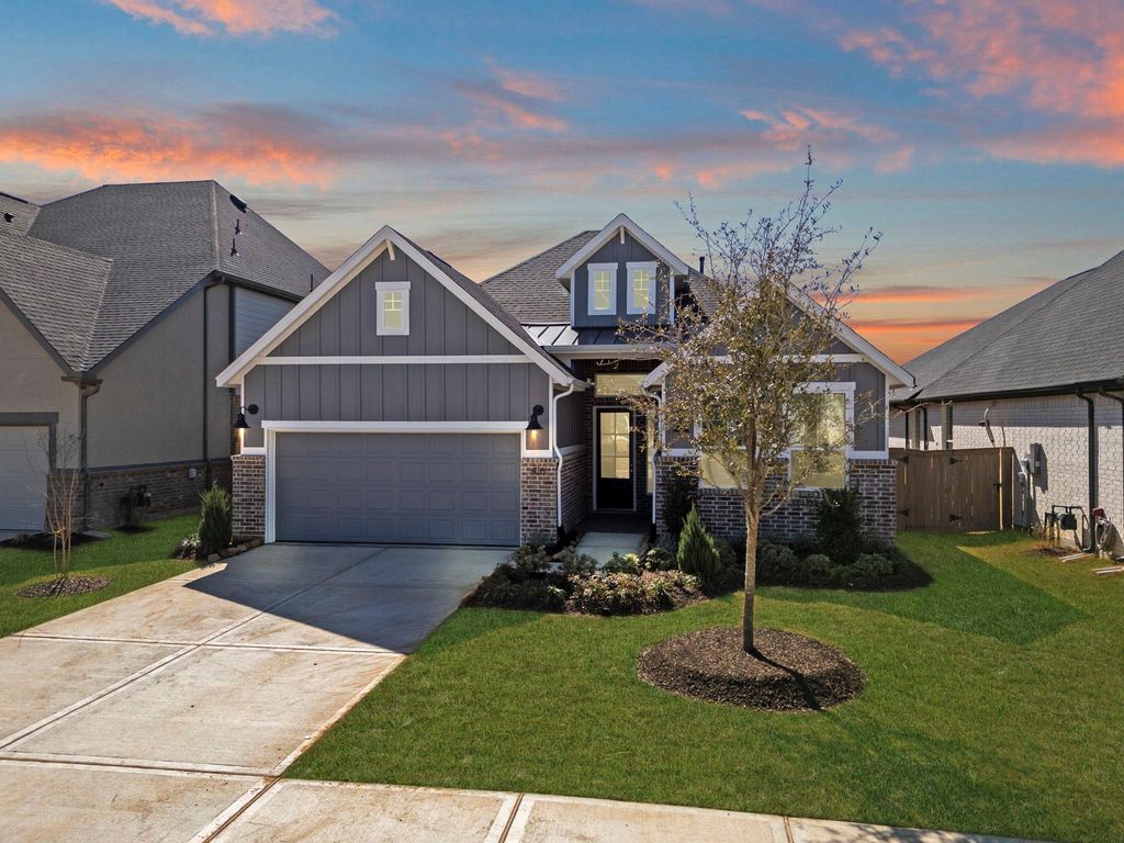 416 Darling Creek Ln is listed for sale at $ 434,990. The Single-Family property has 4 bedrooms, 3 Full Bathrooms, 2052 square feet and was built in 2026. The lot size is 6576 Square feet. ##BR##GRANGE! Katy’s newest master planned community featuring Katy ISD! MOVE-IN READY NOW! THE SUMMERTON IS SO BRIGHT! This Modern, Single Story Split Plan offers 4 Bedrooms, 3 Bathrooms, Drop Zone, Covered Outdoor Living Space + 2 Car Attached Garage! Impressive Quartz Island Kitchen is Wide Open to Family Room and Casual Dining allowing for a Great Space Feel! Serene Primary Retreat offers Vaulted Ceiling w/ Beams + Attached Bath w/ Dual Sinks, Free-standing Tub, Separate Shower and Walk-In Closet featuring a Dressing Area and direct access to Utility. GE Stainless Steel Appliances, 2" Blinds, Upgraded Wood Tile Flooring, Security System, Sprinkler System, Full Gutters, Fully Sodded Yard + Landscaping Pkg all included!