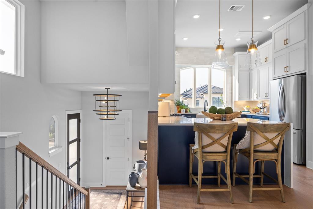 Elevated Lakeway living in The Point at Rough Hollow with hill country views, a private balcony, and close proximity to Lake Travis Situated in the highly sought-after Rough Hollow community in Lakeway, this multi-level residence offers elevated living with a thoughtful blend of design, location, and convenience. Positioned at one of the highest points in the neighborhood, the home features an upper-level balcony to enjoy the beautiful hill country sunrises and sunsets.. The interior showcases an open-concept layout with expansive windows, abundant natural light, and well-appointed living spaces designed for both everyday comfort and entertaining. The multi-level floor plan provides separation of space, adding flexibility and functionality. This 3-bedroom, 2.5-bath home includes a 2-car garage and is located just minutes from Lake Travis, marinas, hiking trails, dining, and community amenities include 4 beautiful pools, gym, splash pad and playground. Zoned to Lake Travis ISD. Offering a low-maintenance, lock-and-leave lifestyle, the property is well-suited for a variety of living arrangements. Conveniently located approximately 40 minutes from downtown Austin and Austin-Bergstrom International Airport.