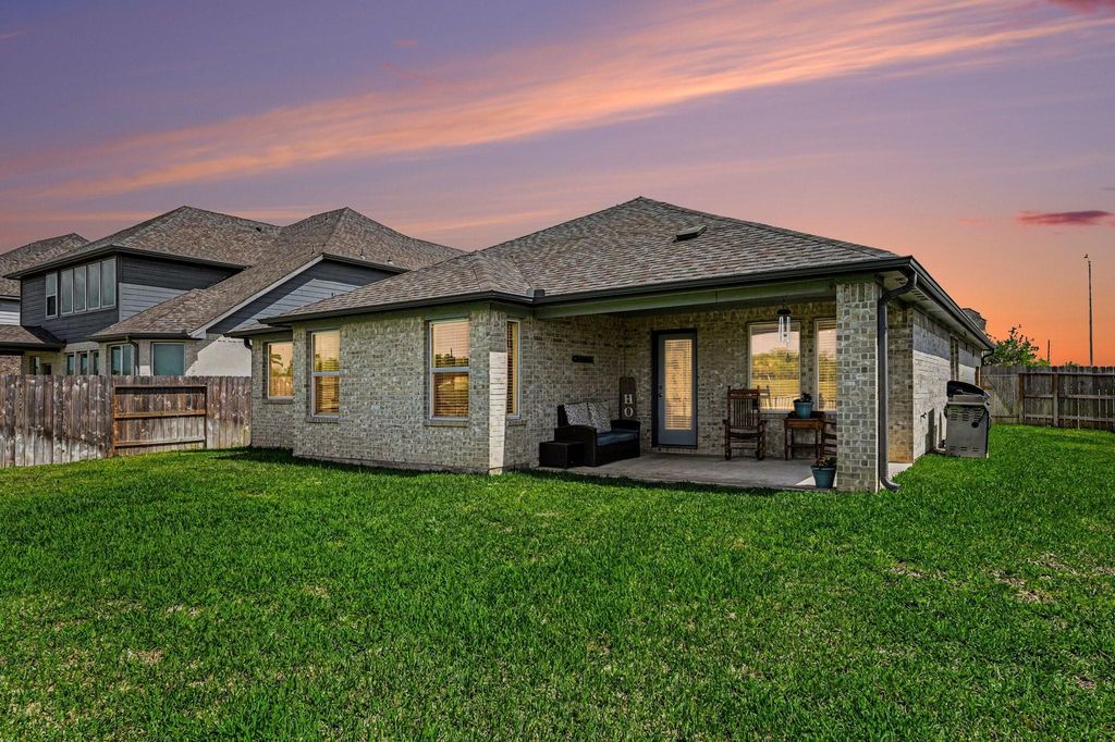 Stunning “almost new” one-story Retreat, where charm, comfort, & style come together beautifully. This 3-bedroom, 2-bath home offers a thoughtfully designed layout with a timeless neutral color palette that creates a warm & inviting atmosphere. Beautiful landscaping to welcome guests. Step inside to a light-filled interior featuring a gorgeous kitchen complete with spacious island, sleek stainless steel appliances, & a gas stove, perfect for both everyday living & entertaining family & friends. The open feel & natural light make this home feel airy. Outside, enjoy your own private oasis with covered patio overlooking a serene neighborhood lake—an ideal spot for morning coffee or evening relaxation. This move-in ready home is located in the sought-after new section of Kingdom Heights with access to playgrounds, parks, & scenic lakes, and is zoned to highly rated schools. Energy efficient, low utility bills. Don’t miss the opportunity to make this exceptional home yours!