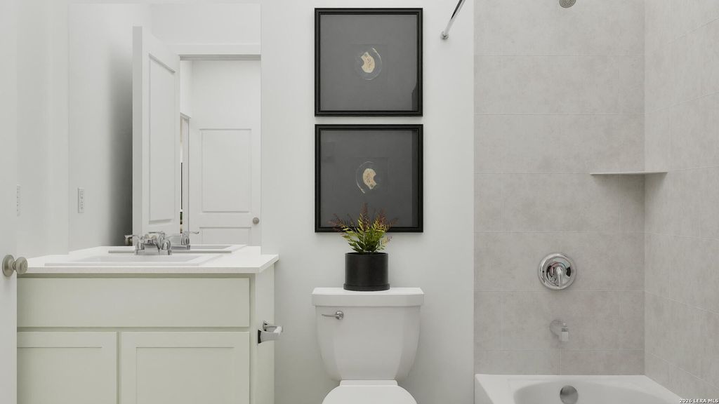 The Cornwall - This new four-bedroom home offers convenient single-floor living. An open-concept design blends the kitchen, dining room and family room for optimal multitasking and everyday transitions. A nearby covered patio provides effortless outdoor recreation. Three secondary bedrooms are tucked away to the side of the home, and the luxurious owner's suite is nestled into a private rear corner, complete with a full bathroom and walk-in closet. Estimated Completion June 2026. The completion date, prices and features may vary and are subject to change. Please verify with Lennar directly. Photos are for illustrative purposes only.